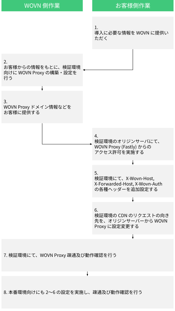 このページでは、WOVN プロキシ方式の導入の流れについて説明します。