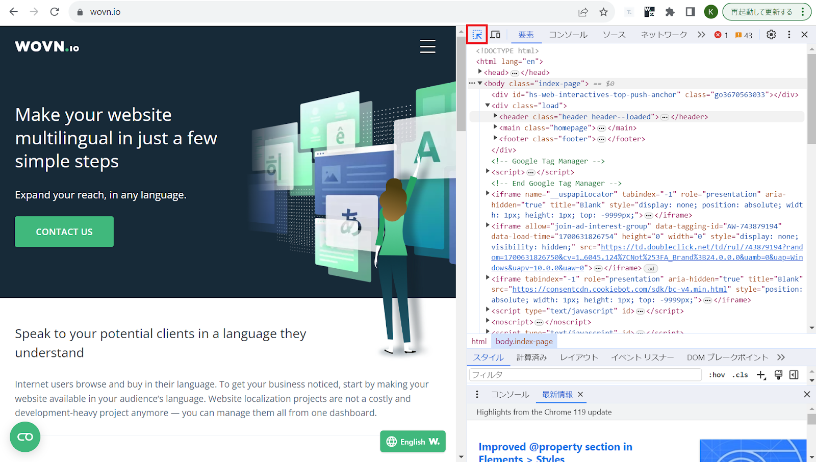 対象ページにアクセスし、F12 キーを押下してブラウザの検証ツールを開きます。