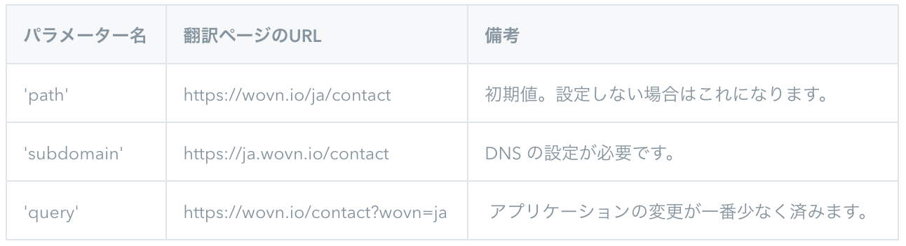初期設定では、クエリパラメーターは 'wovn' に設定されています。