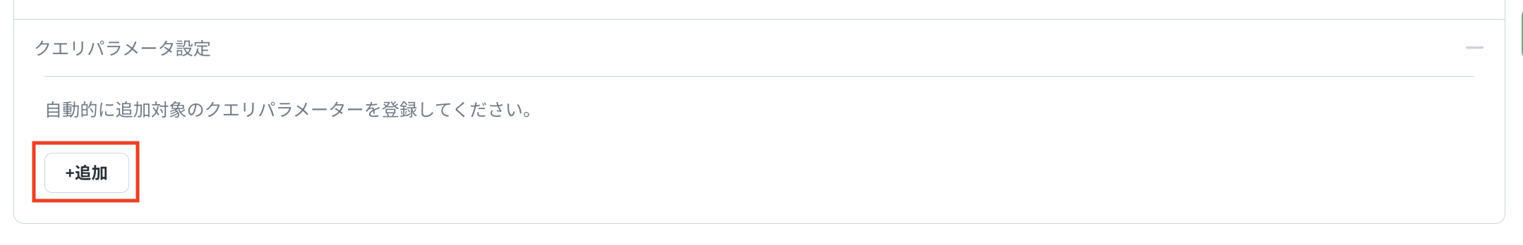 「クエリパラメータ設定」内の「追加」ボタンを押下します。