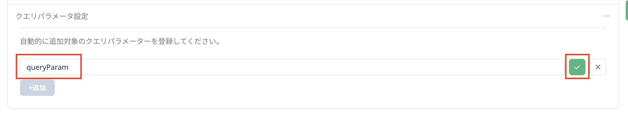 ページ追加時に認識させたい「クエリパラメーターキー」を入力し、チェックボタンを押下します。