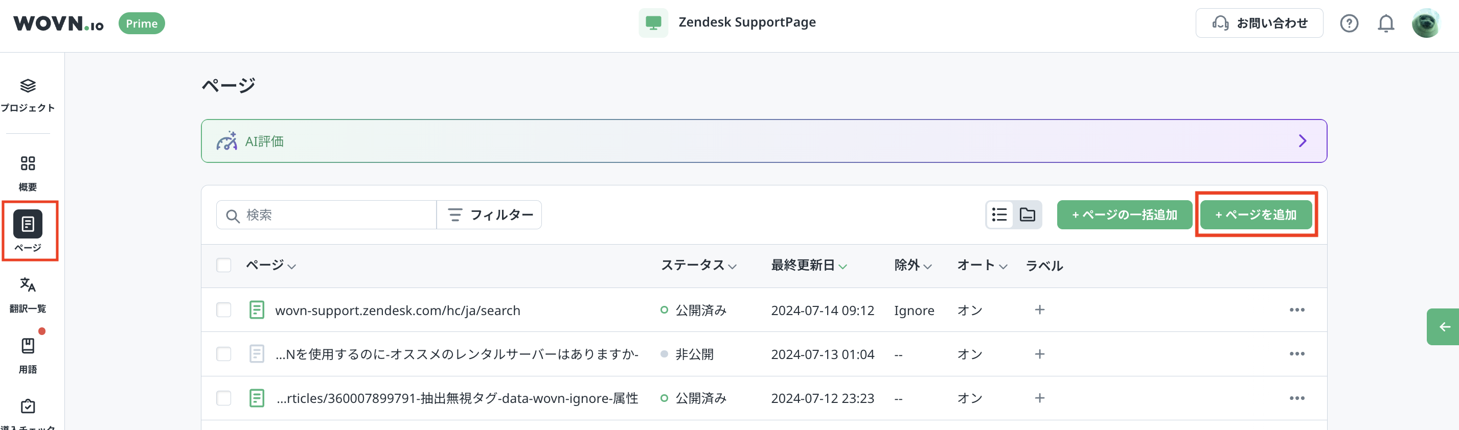 その場合、全ての翻訳データが WOVN 上の同じぺージに集約されるため、翻訳データの管理が煩雑になります。