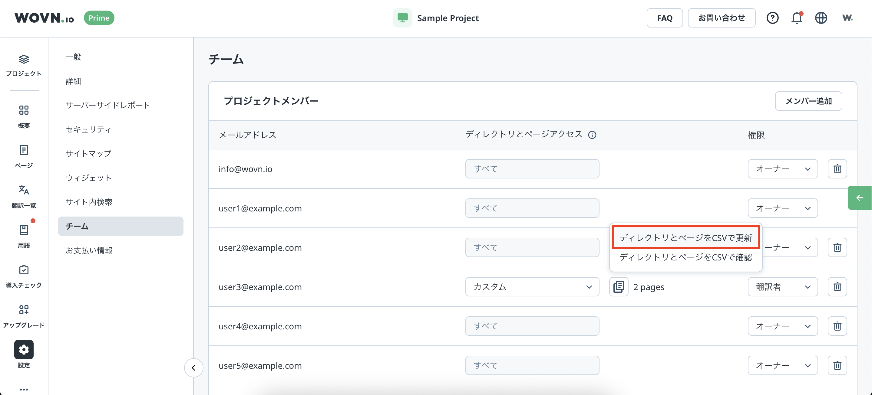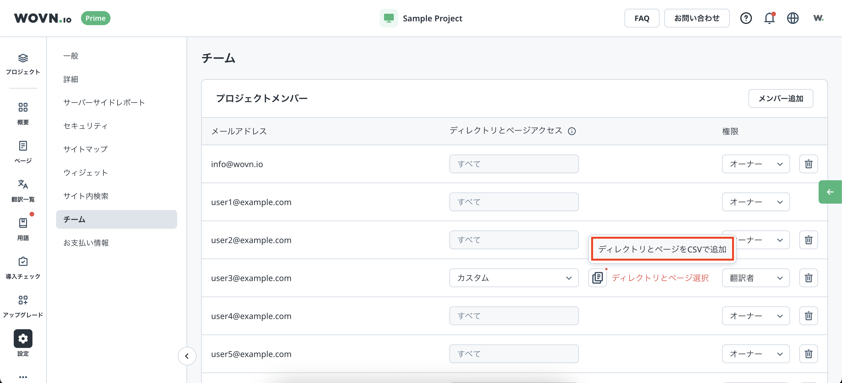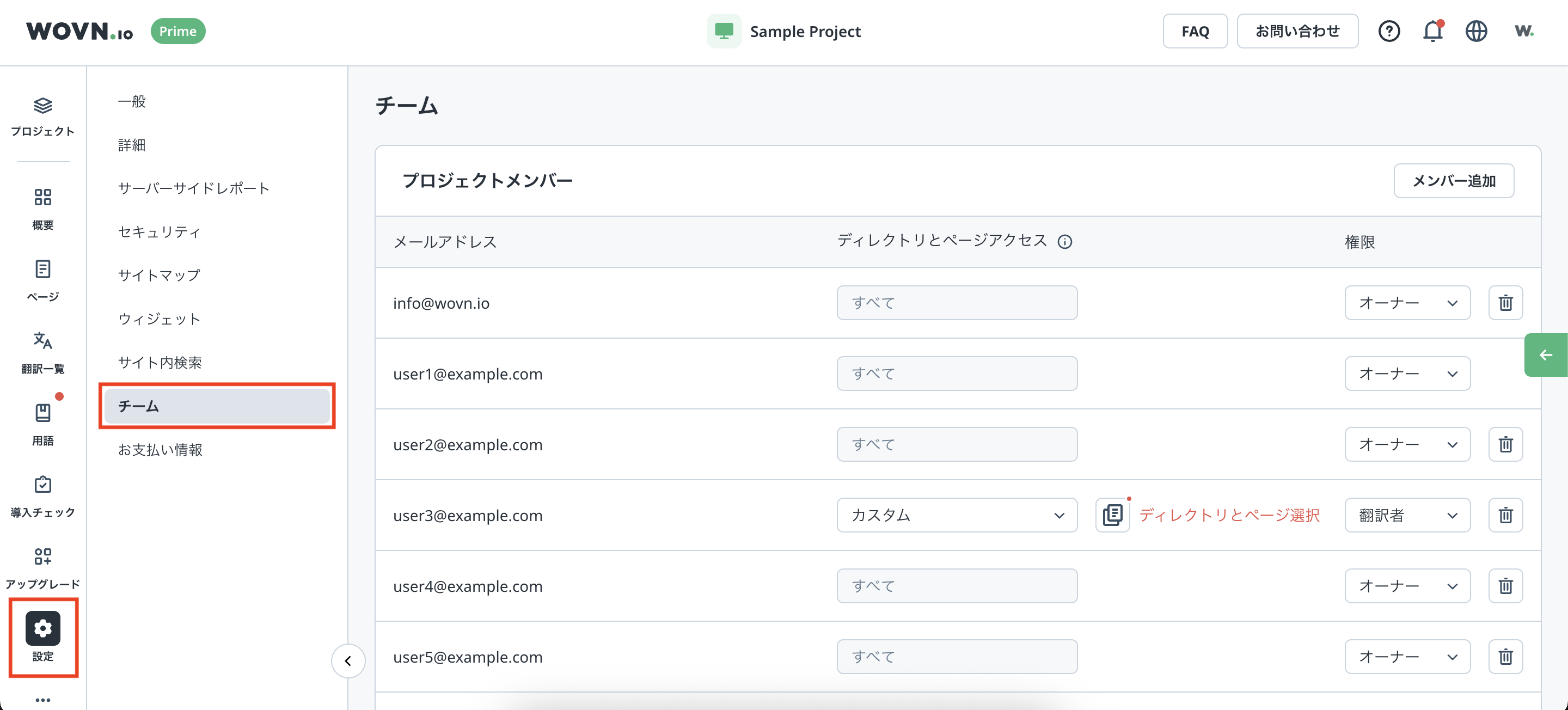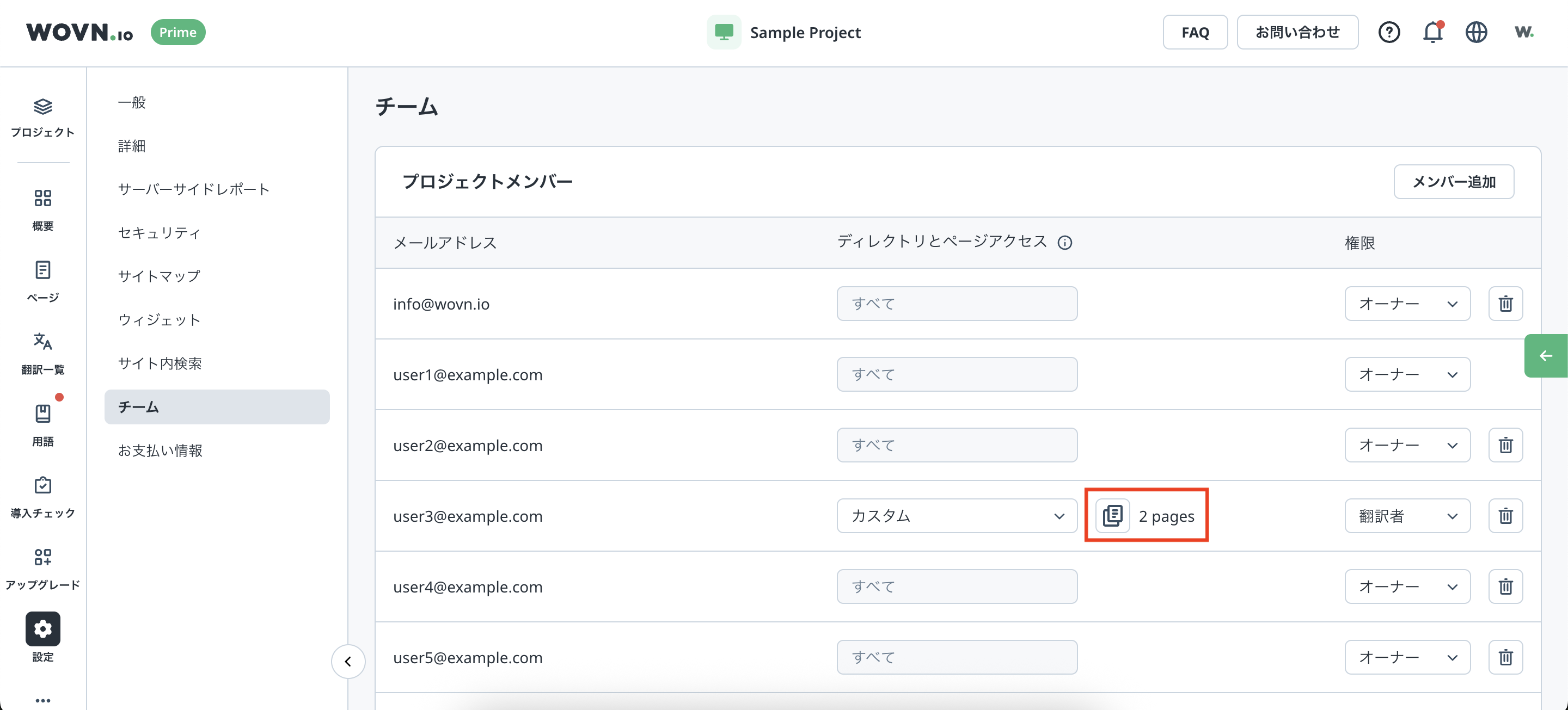 1つの WOVN アカウントに複数の WOVN プロジェクトを紐付けることができます。また、プロジェクトごとにアカウントの権限を設定できます。