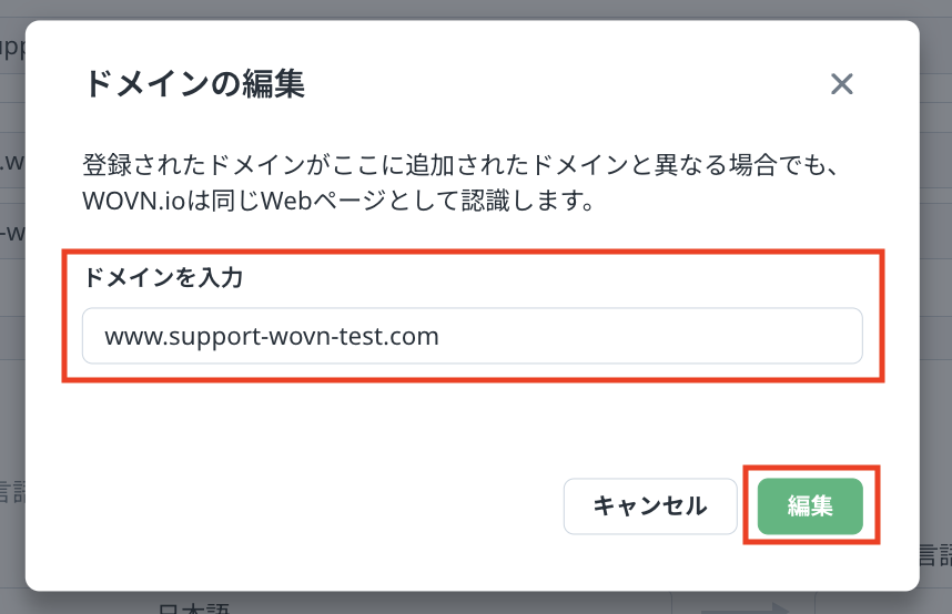ポップアップウィンドウでドメインを編集し、「編集」ボタンを押下します。