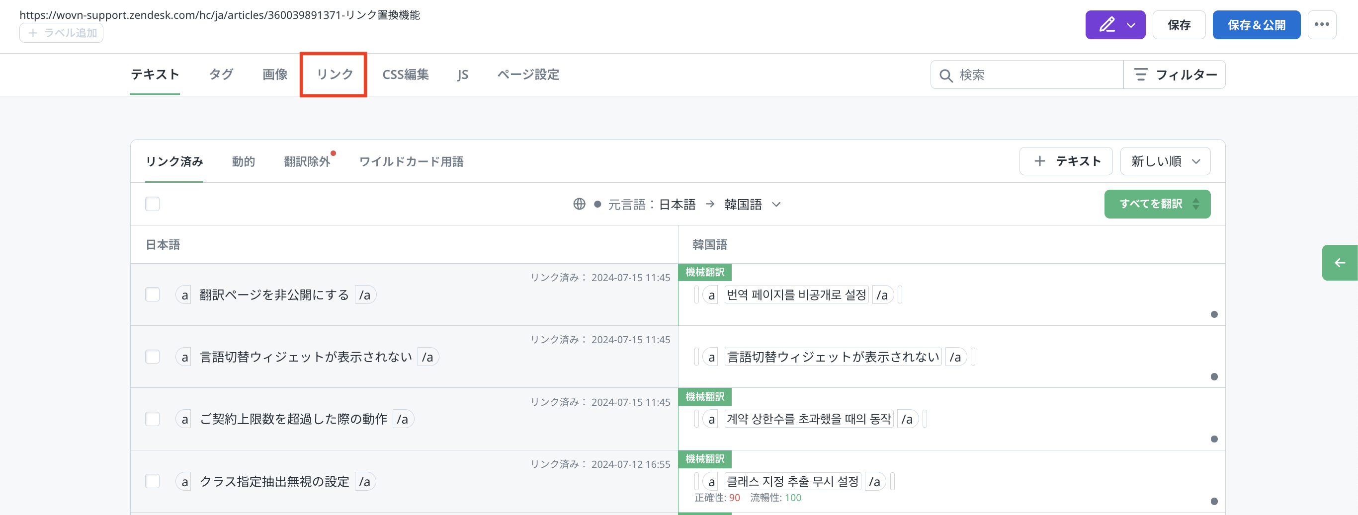 WOVN で切り替えた言語に応じて、 <a> タグなどに記載された URL を置換できる機能です。