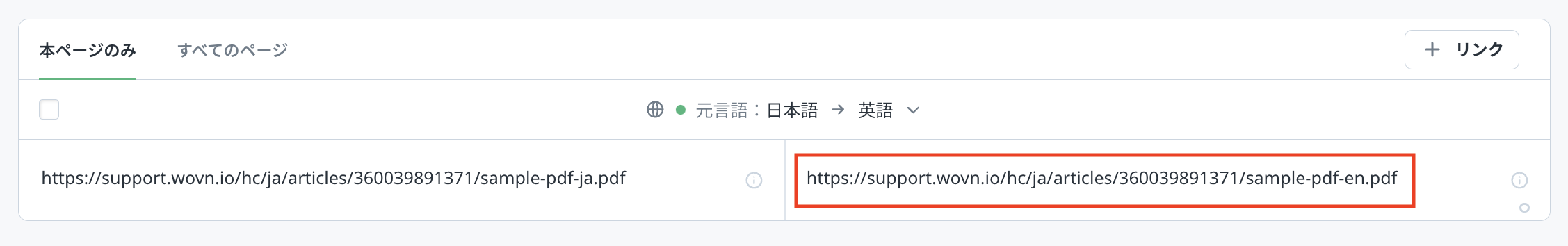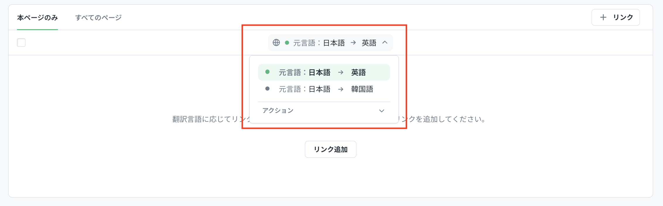 ページの言語別に、遷移先のリンクや PDF ファイルを出し分けたりする場合に使用します。