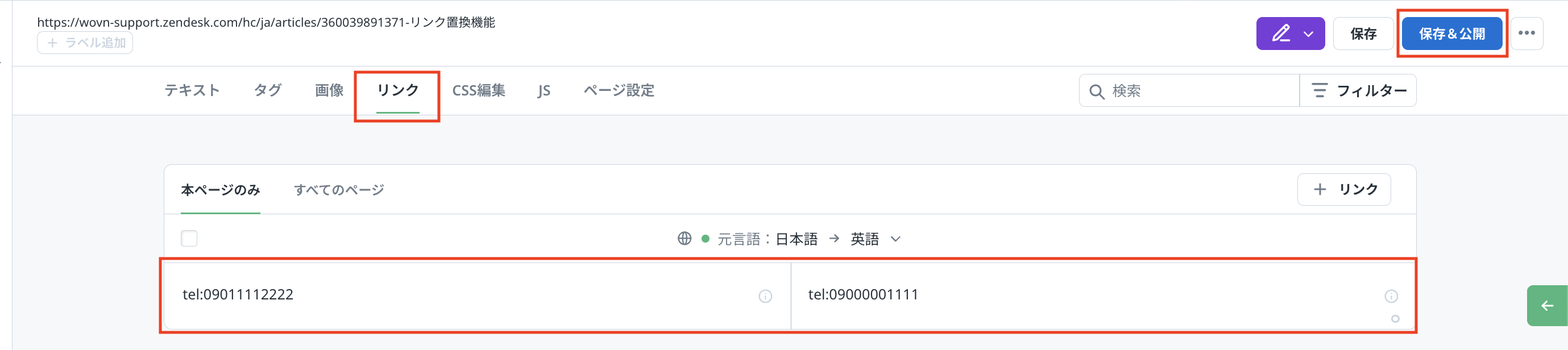リンク置換機能を使うと、翻訳言語に応じて電話をかけることができます。