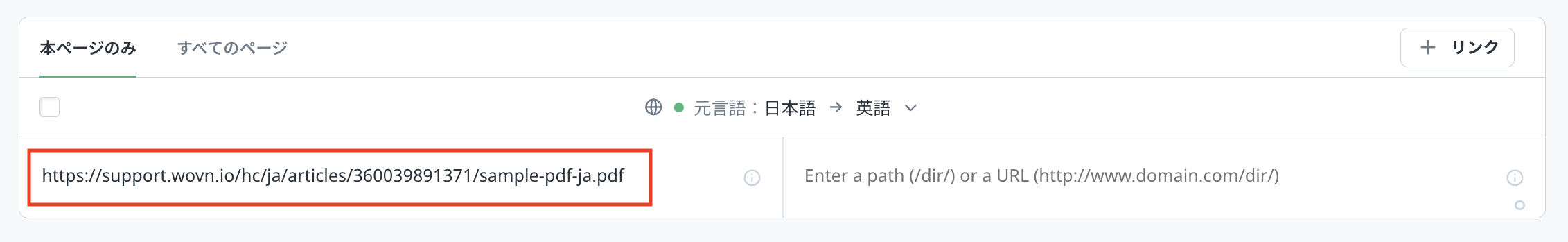 トップパスを基準に、リンク置換対象のパスを設定します。また、相対パスで記載すると、WOVN に登録されているすべてのドメインに対し、置換設定を適用することができます。
