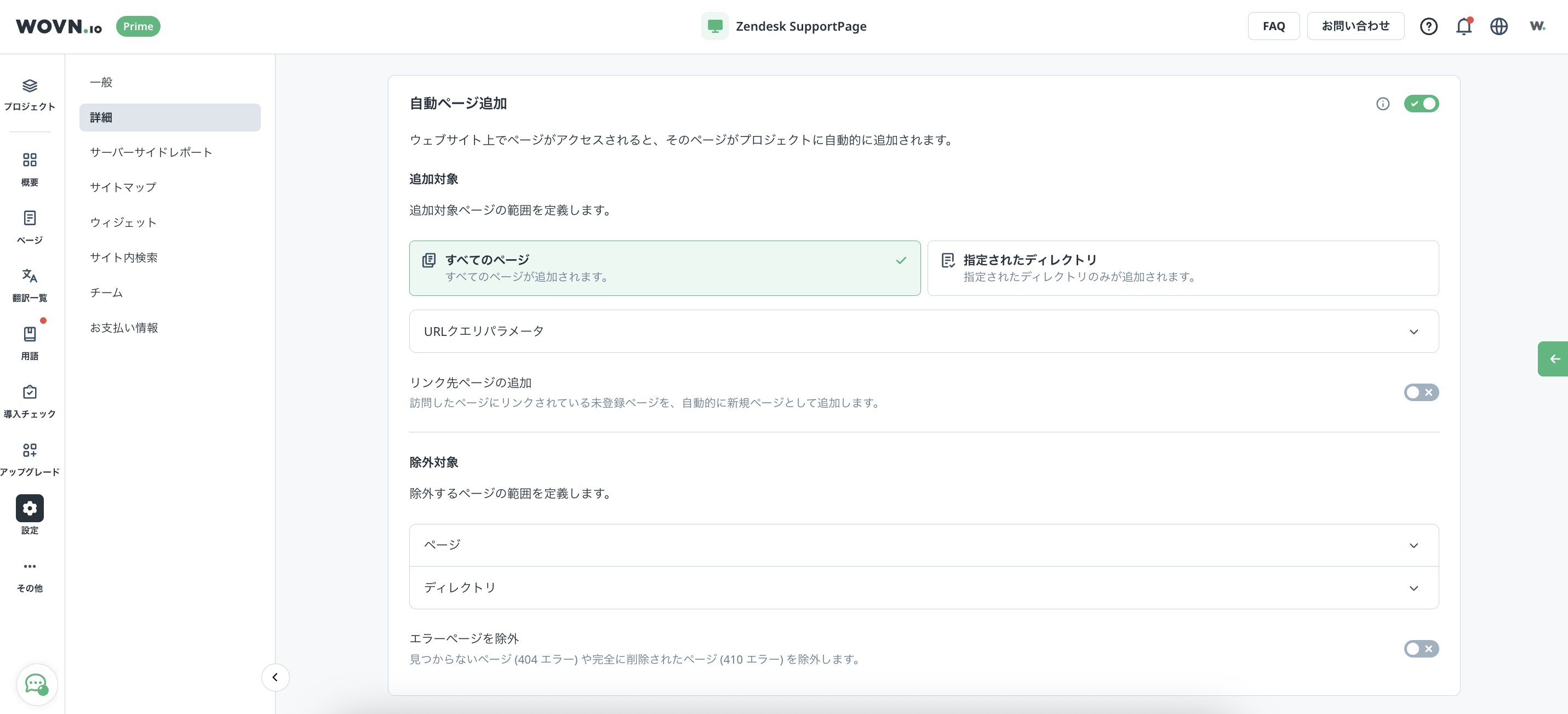 新規作成されたページを、WOVN に自動的に取り込むか否か設定ができます。
