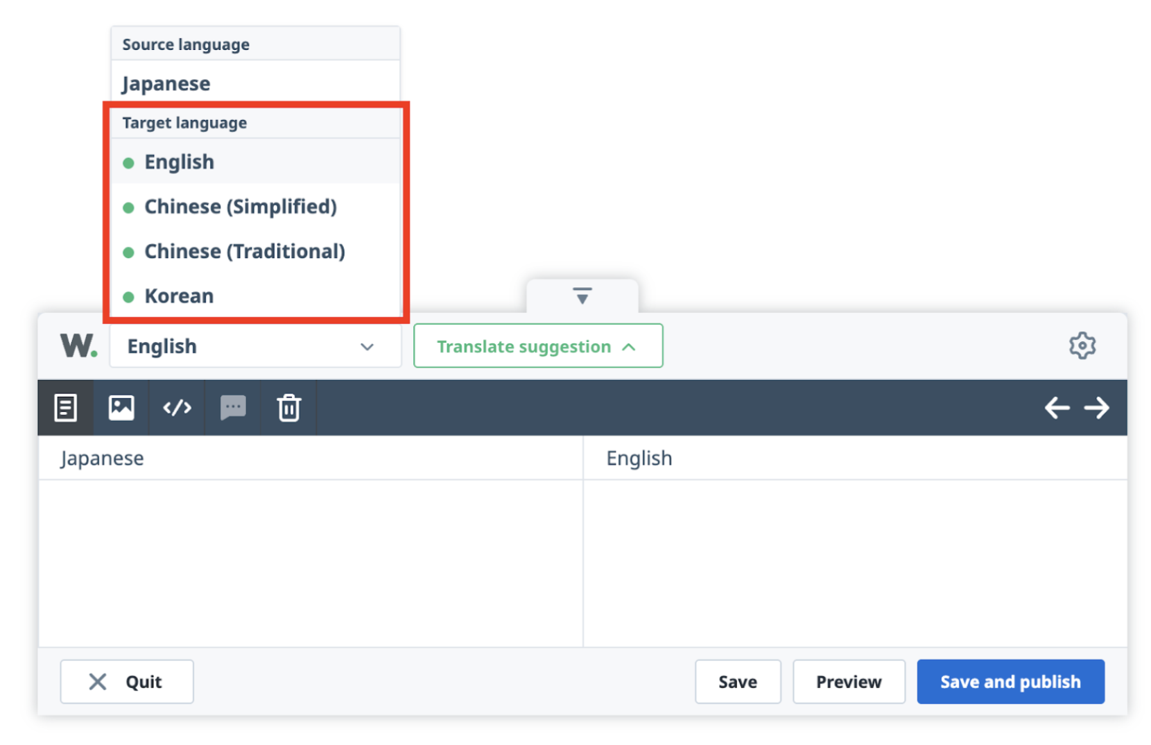 3. 左上のプルダウンメニューから、修正したい言語を選択します。
