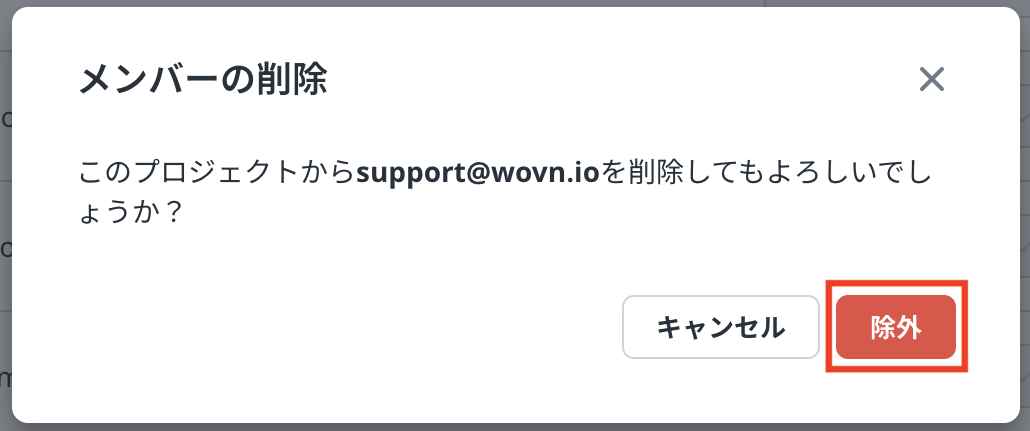 確認のポップアップウィンドウが表示されたら、「除外」ボタンを押下します。