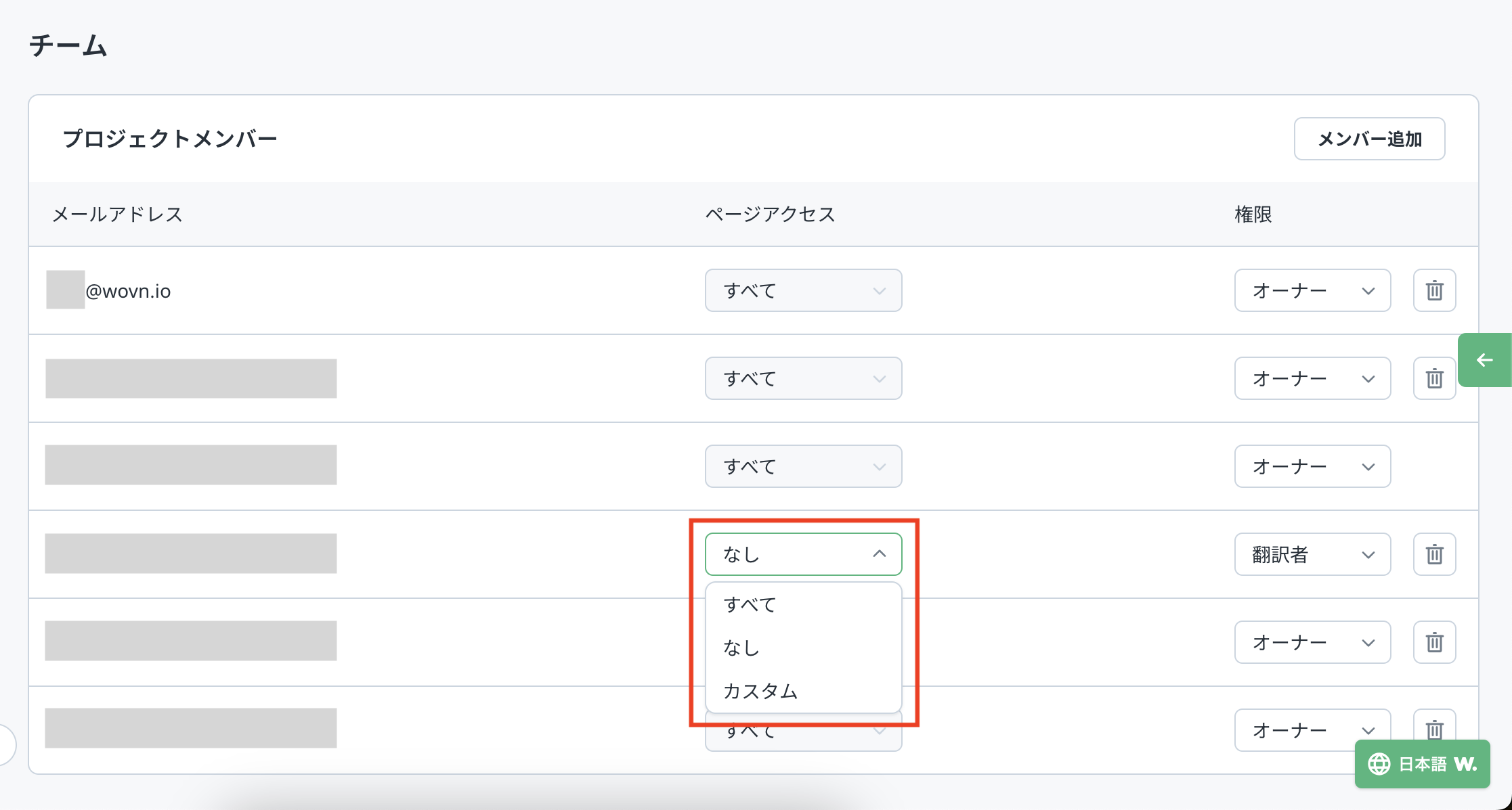 WOVN ではプロジェクトに複数のユーザーを紐付けて共同で作業することが可能です。