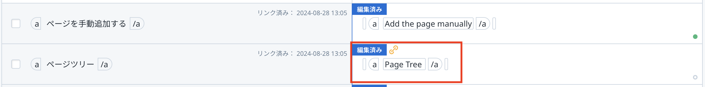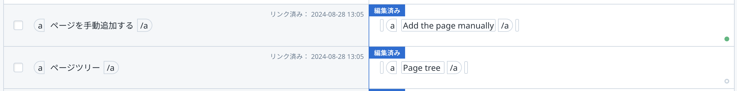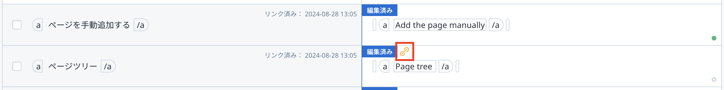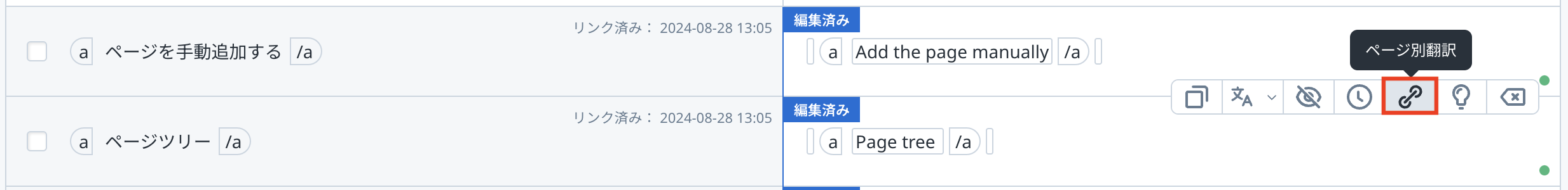 該当バリューに「ページ別翻訳」が適用されていることを表すアイコンが表示されます。