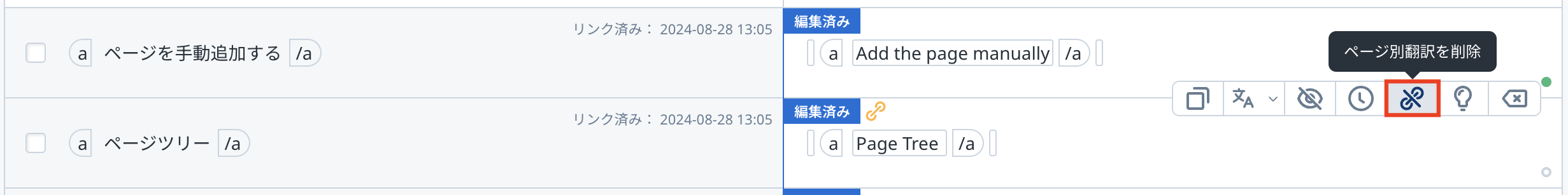 ページ別翻訳を解除する