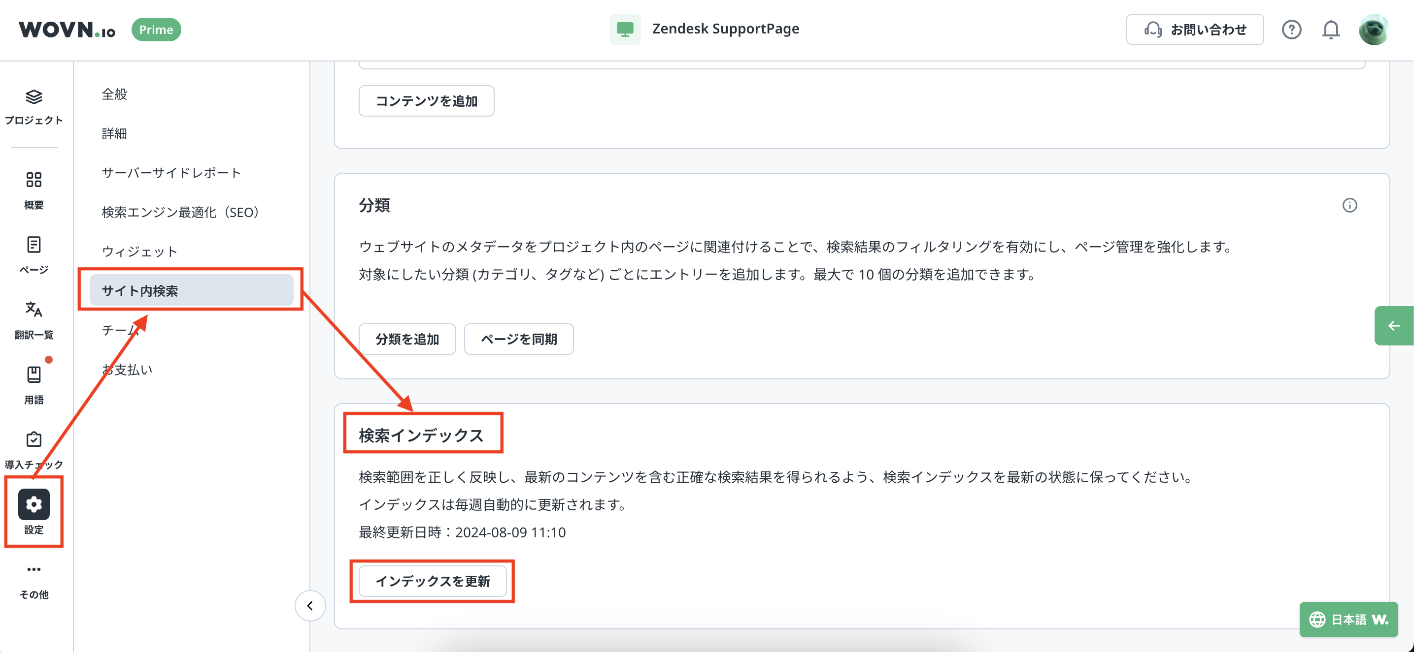 検索インデックスの更新も定期的に自動的に行われるため、自動コンテンツ追加機能 や 自動 AI 翻訳機能 とあわせて利用すれば、検索データを常に最新に保つことができます。