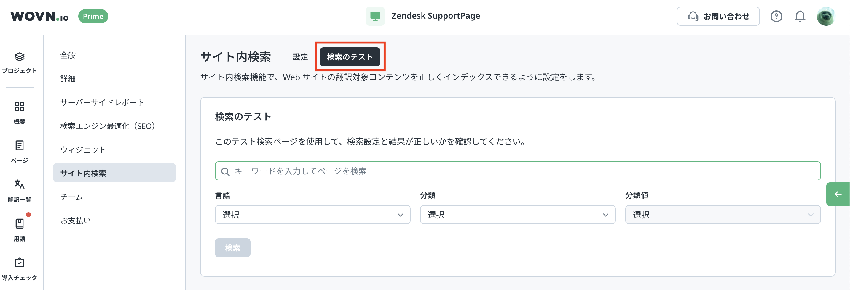 サイト内検索機能(サイト内検索 API)は、WOVN.io 経由で翻訳したテキストを直接検索します。