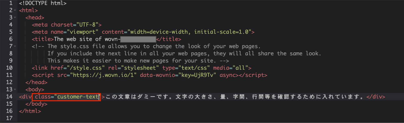 「customer-text」の部分には、前項で設定した固有の class 属性を入力します。