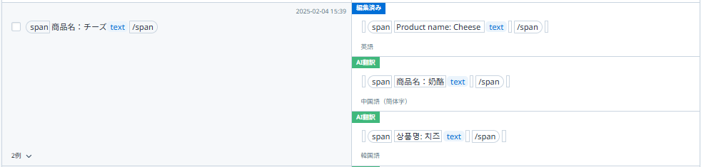- WOVN に登録されているテキストの中で、完全一致するテキスト(バリュー)の数が表示されます。